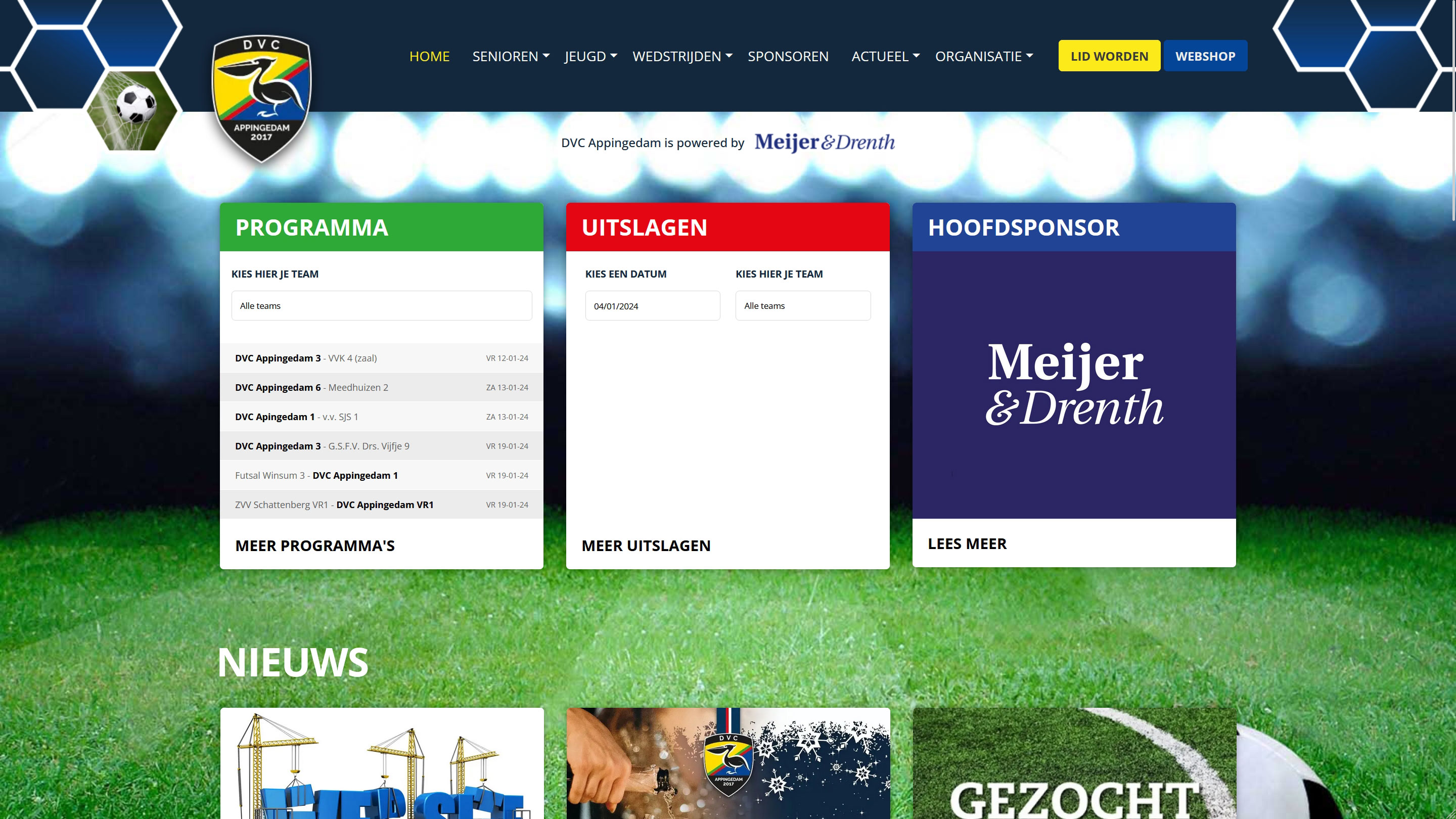 Met onze sportwidget kan de gemeenschap van DVC Appingedam snel hun programma's, standen en meer bekijken.