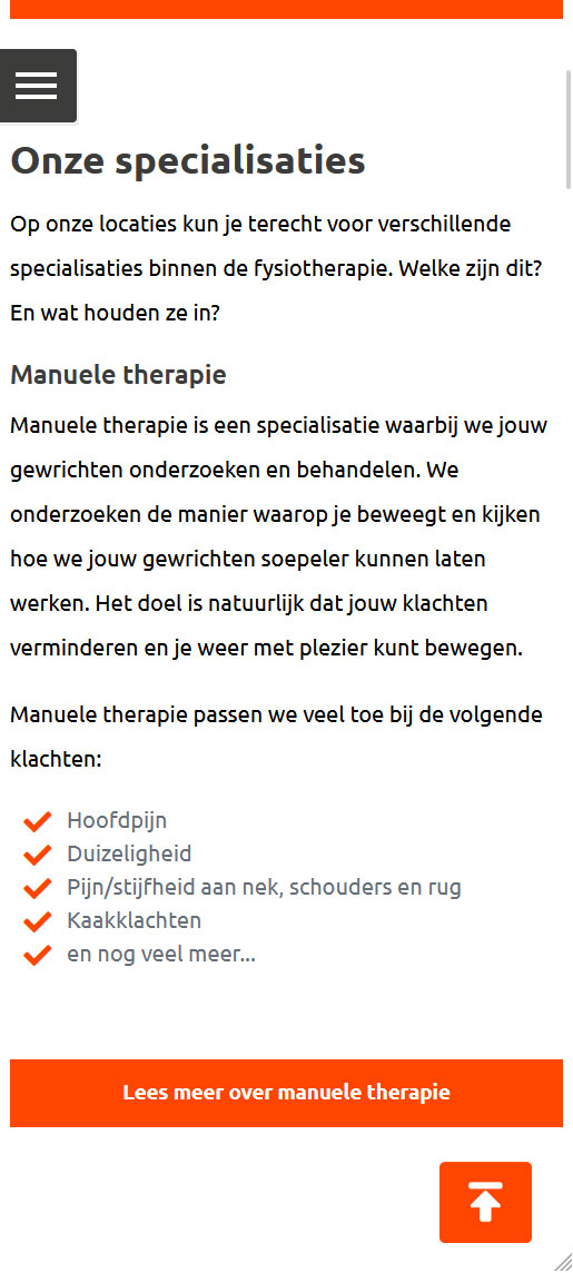 Elk aspect van de website is doordacht ontworpen, waardoor de online representatie van Fysio Bakker optimaal geoptimaliseerd is.