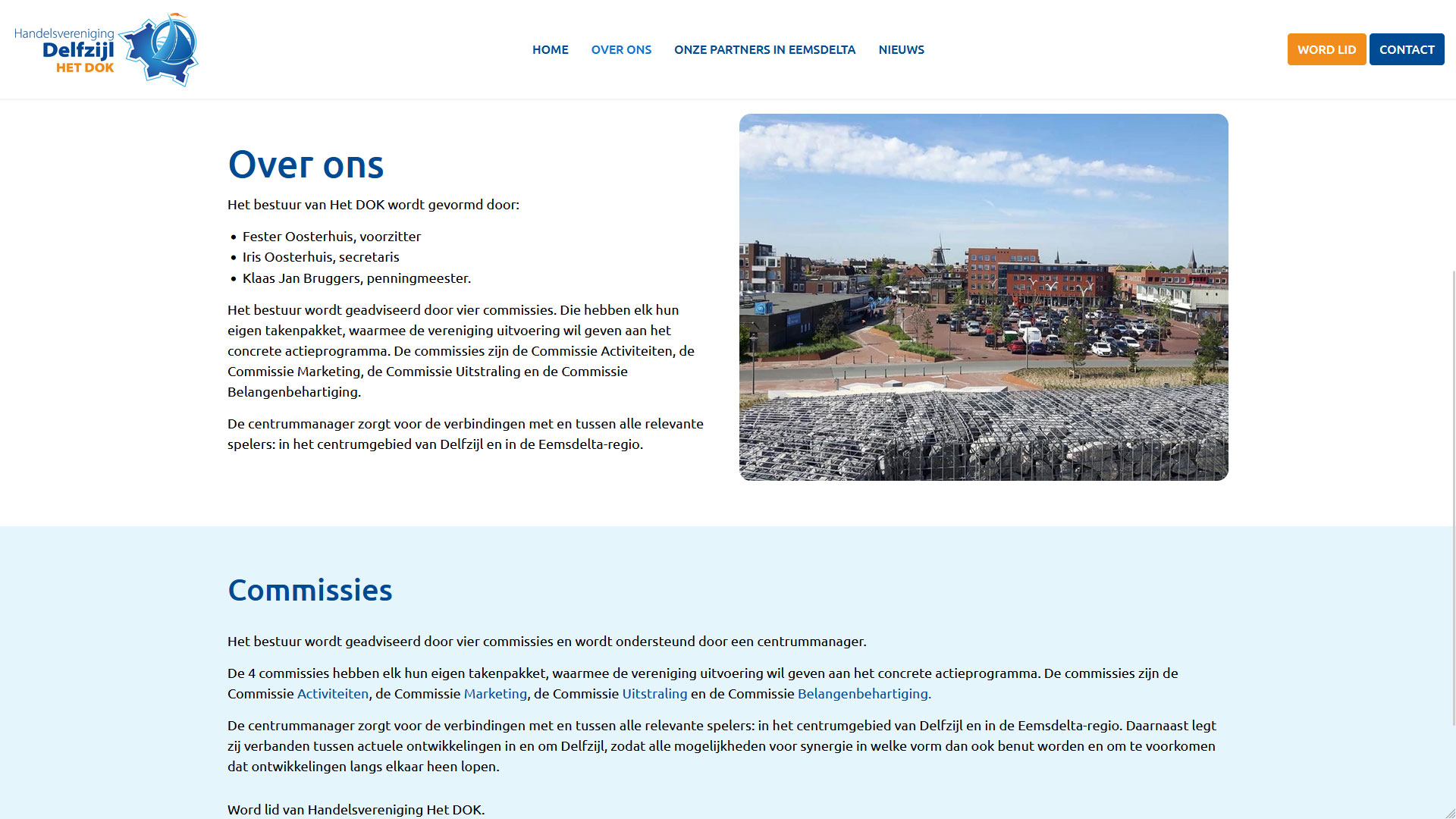 Handelsvereniging Het DOK, geleid door het dynamische bestuur van Fester Oosterhuis, Iris Oosterhuis, en Klaas Jan Bruggers, wordt geadviseerd door vier krachtige commissies: Activiteiten, Marketing, Uitstraling en Belangenbehartiging. De centrummanager zorgt voor cruciale verbindingen in het centrum van Delfzijl en de bredere Eemsdelta-regio.